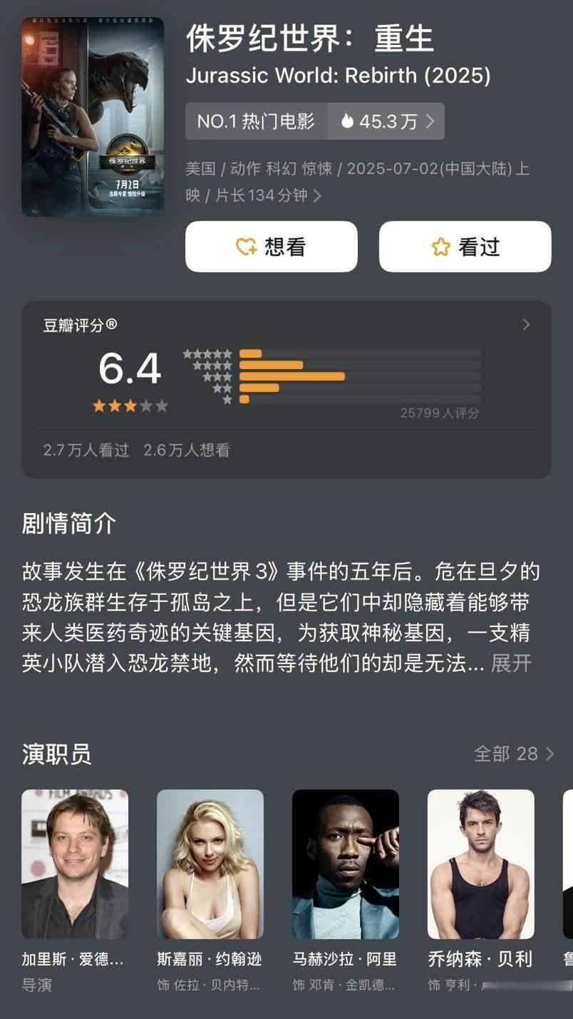 像《侏罗纪世界:重生》这类电影,我愿称之为批量流水线的烧钱片,只需要按照既定的模板>AI创作剧本,然后把视效质量拉满,接下来再堆砌明星阵容即可。